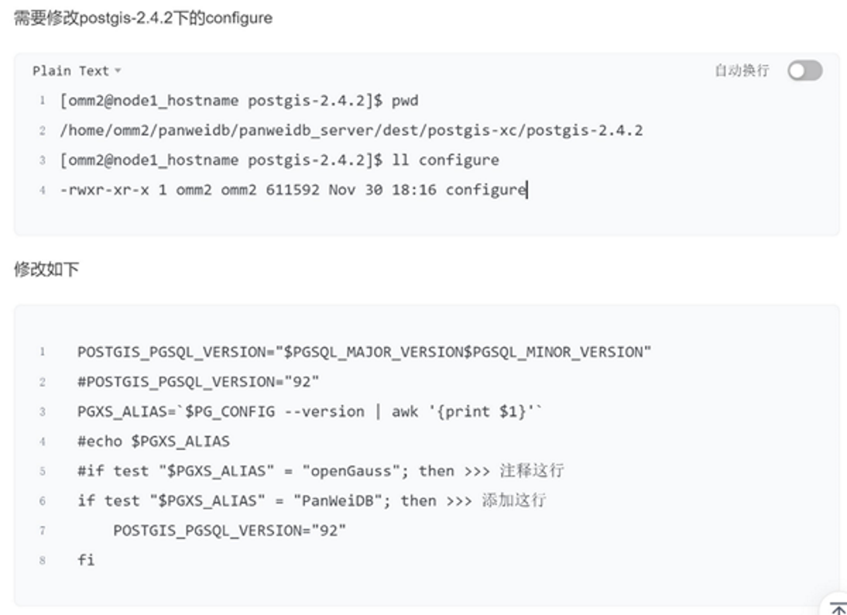 2、编辑configure文件,修改openGauss为PanWeiDB