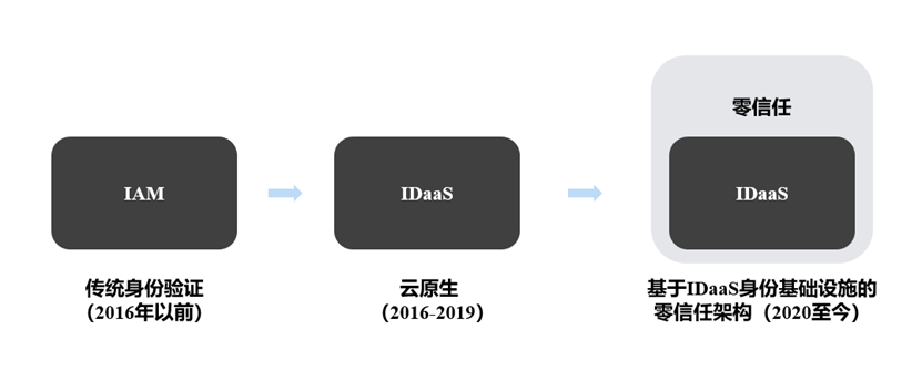 近年来,技术厂商逐渐从提供IAM(2016年以前)过渡到IDaaS(2016-2019),接着进化为零信任解决方案(2020至今)。