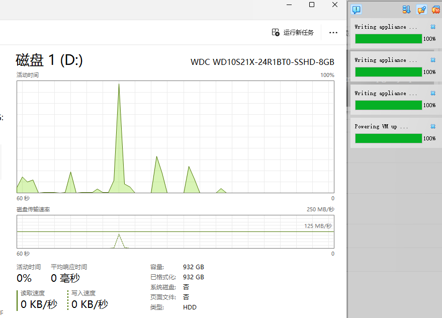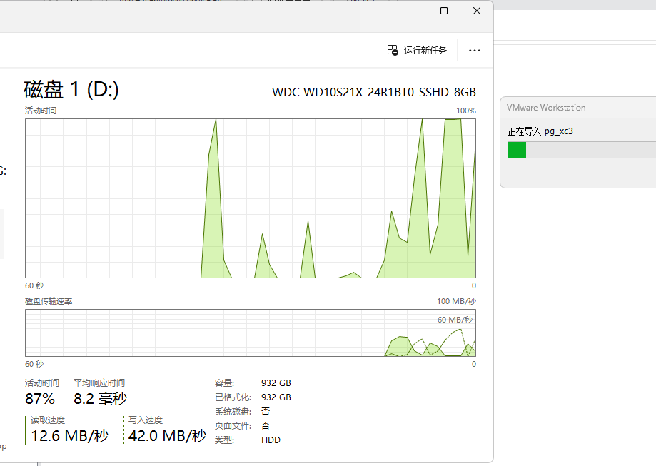 开始导出后,可以看到 磁盘读写开始变得很快,然后额.....,等待一会吧。大概1分钟导1G?