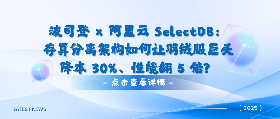 在羽绒服行业,“旺季抢收、淡季节流” 是永恒的经营命题。波司登作为全球领先的羽绒服企业,每年 4 个月销售旺季要支撑 3500 + 门店、5000 万 + 电商粉丝的实时数据分析需求,淡季又需控制成本避免资源浪费。过去,多引擎并存的旧架构让数据冗余、性能卡顿、成本高企成为难题;如今,基于阿里云 SelectDB 的存算分离升级,不仅实现了 2-5 倍性能跃升,更让总体成本降低 30% 以上,为传统企业数字化转型树立了标杆。