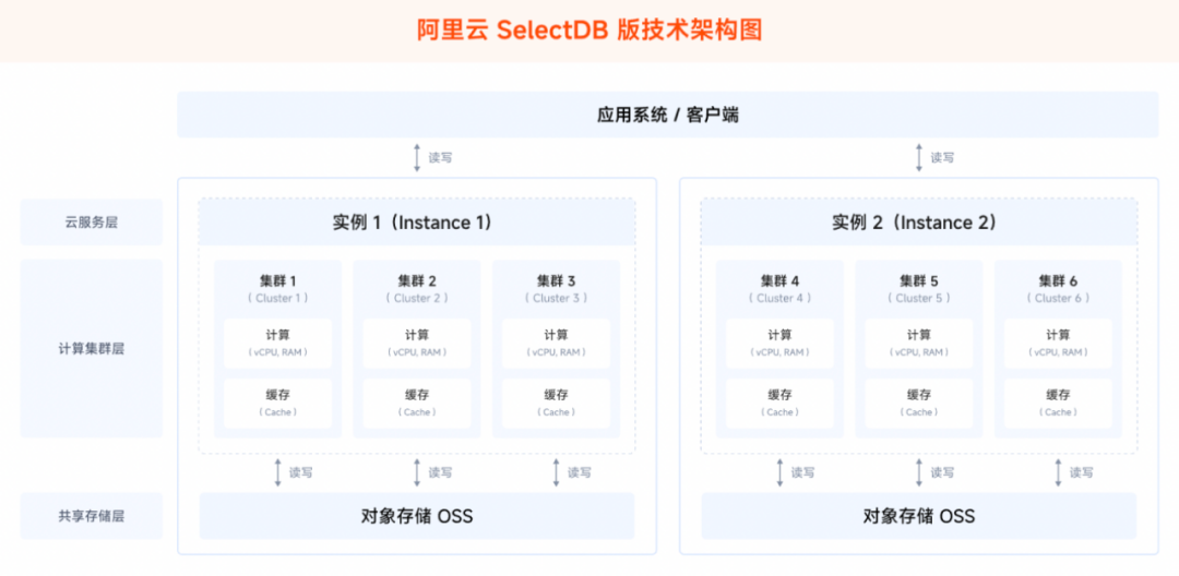 面对困境,波司登最终选择阿里云 SelectDB 作为统一分析引擎,核心在于其云原生存算分离架构—— 将数据存储在低成本 OSS 对象存储,计算节点按需弹性调度,再通过资源隔离确保业务互不干扰,完美适配 “旺季弹性扩容、淡季缩容降本” 的需求。