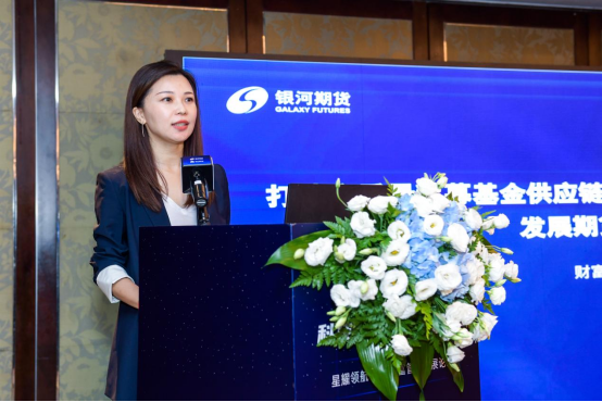 银河期货财富管理部总经理王慧颖以“打造高质量私募基金供应链,发展期货公司特色财富管理业务”为主题进行了分享。她详细解读了银河期货财富业务的过往发展趋势,并重点介绍了为私募机构量身打造的高质量供应链服务内容。