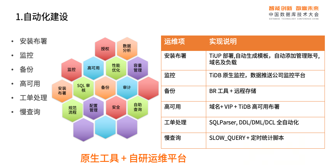 汽车之家在 TiDB 应用过程中,自研运维平台并结合原生工具,实现了: