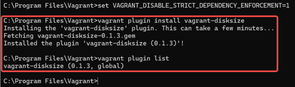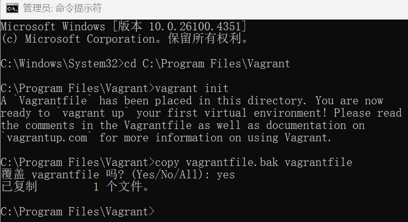 以管理员身份运行 cmd,在 Vagrant 安装目录(C:\Program Files\Vagrant