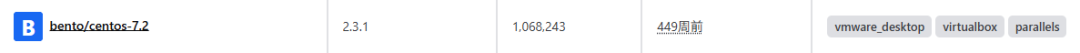 可选择 bento/centos-7.2 的 box,可以看到,除了 VirtualBox 以外,该 box 也支持 VMWare。