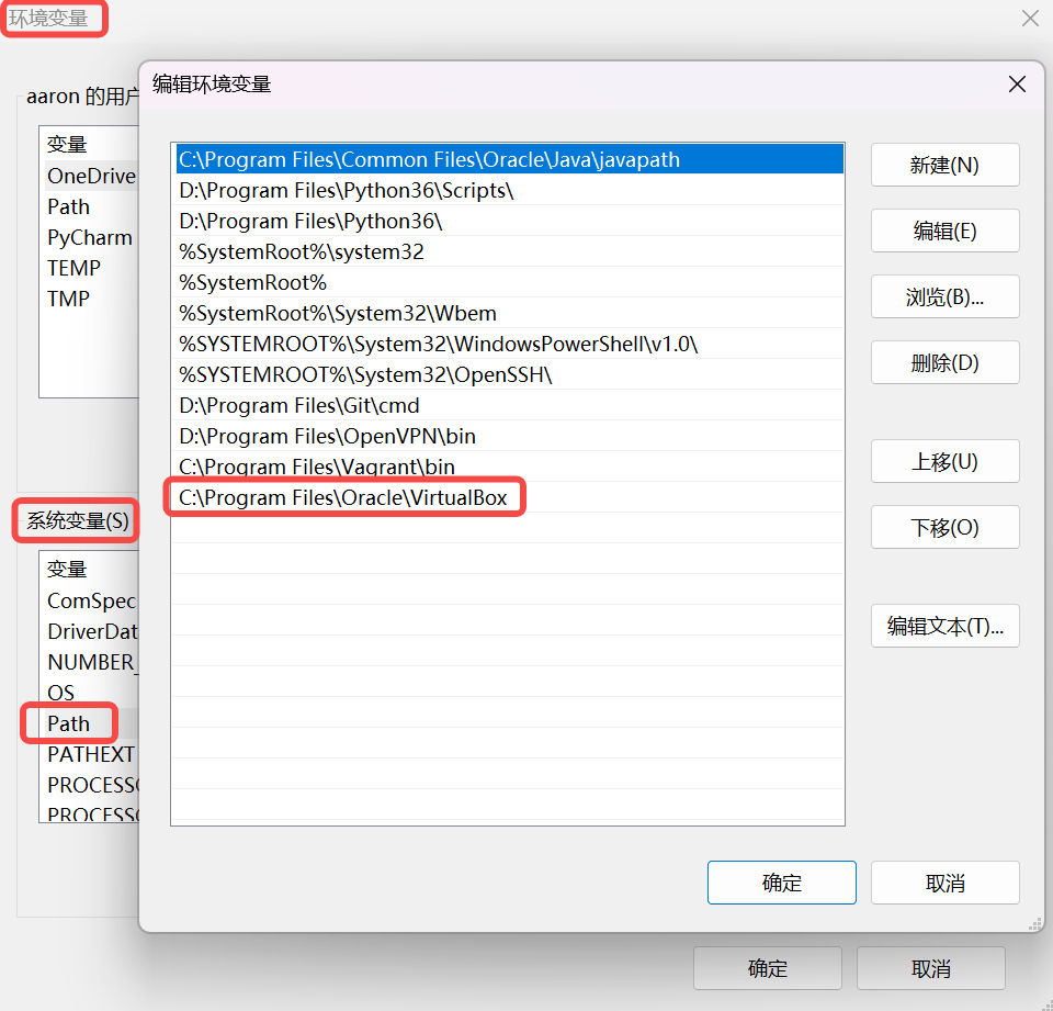 使用 VBoxManage 命令即可,如果提示未找到可执行的命令,需要修改 Path 系统变量,添加 VirtualBox 的路径。