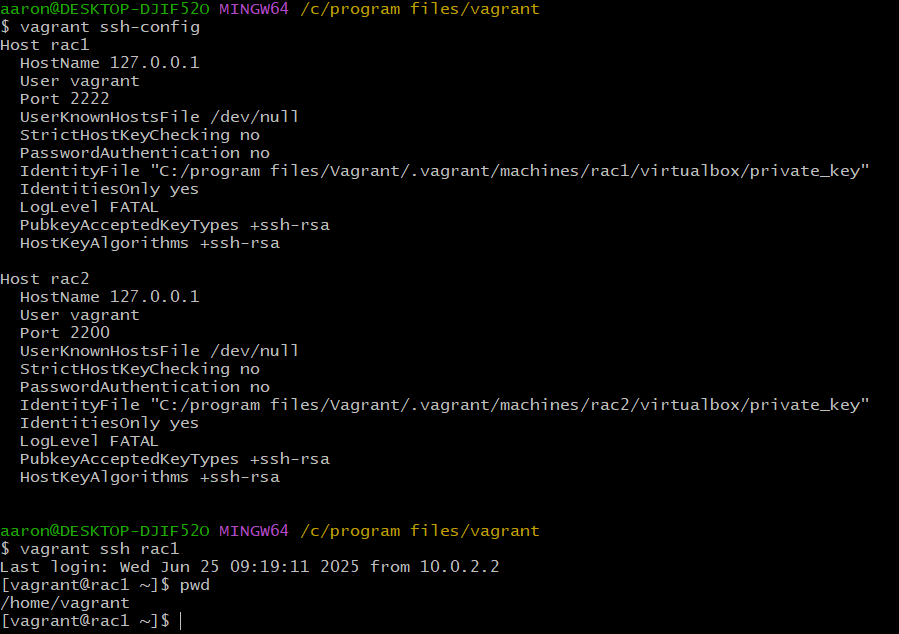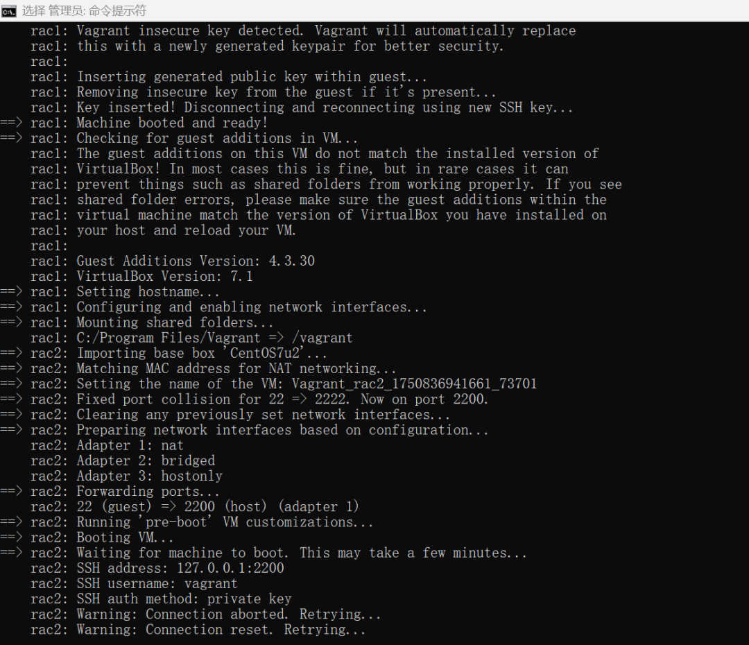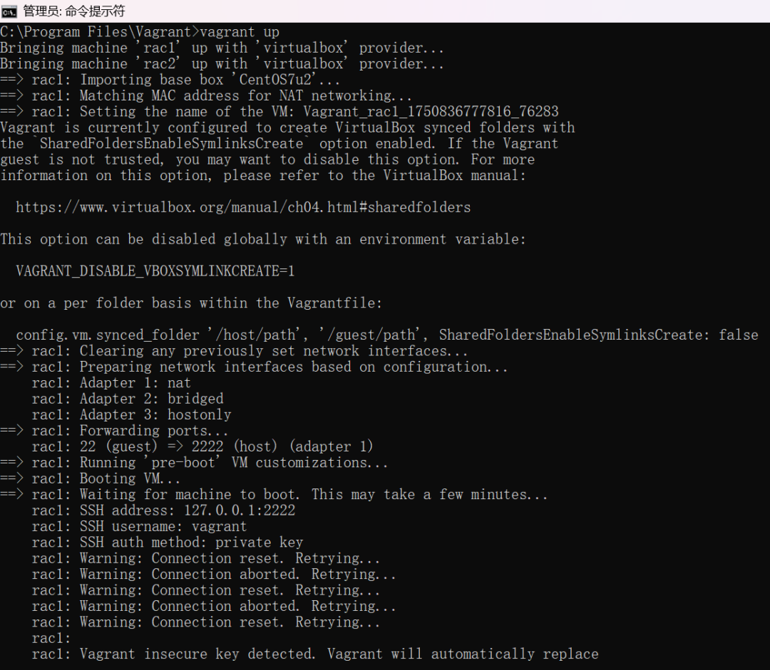 rac1.vm.hostname = "rac1" 指定虚拟机内部的主机名为 rac1 (集群节点必须通过主机名相互解析)