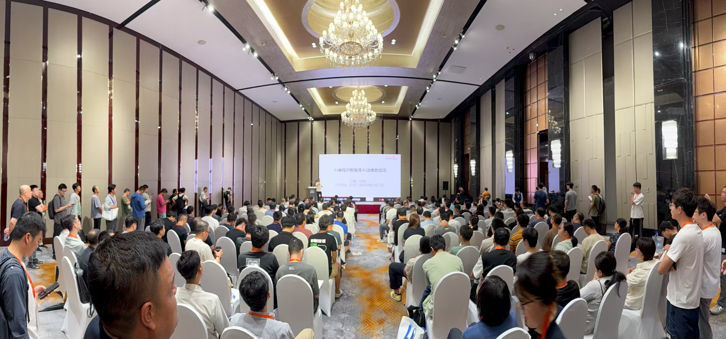 我所在的专场4由崔鹏博士主持,白鳝老师开场。宏观AI浪潮席卷全球,微观席卷参会所有听众,白鳝老师在台上分享他们最新产品佰晟 BIC-QA 数据库知识问答,台下一直在加凳子,再后面只能挤一挤站着听。