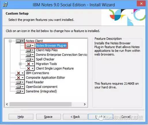 在最新的 9.0 版本中,用户可以在 Notes 的安装界面上选择安装 Notes Browser Plug-in ( 默认是不安装的 ),如图 3 所示。