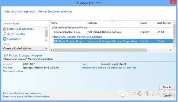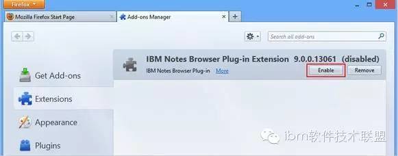 如果在插件管理界面中看到 “Enable”按钮 ( 如图 4.),说明 Notes Browser Plug-in 的插件还没有启用,请点击“Enable”按钮