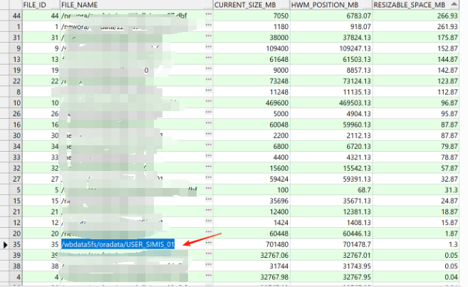 file_id;可以发现USERSIMIS最多能缩小1.3M(文件末尾连续空闲空间),太小了,无法resize