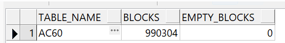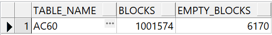 select TABLE_NAME,BLOCKS,EMPTY_BLOCKS from dba_tables a where a.TABLE_NAME='AC60' and a.OWNER='SIMIS';