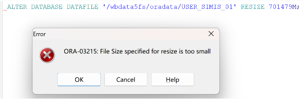 ALTER DATABASE DATAFILE '/wbdata5fs/oradata/USER_SIMIS_01' RESIZE 701479M;