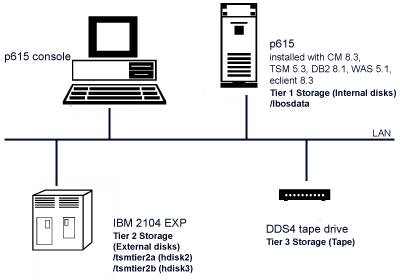 请注意,在本文中 Tivoli Storage Manager 是安装在同一台计算机上的。但在生产系统中,总是建议将 TSM 分离出来,在其自己的一台计算机上安装。如果拥有一个以上的 Resource Manager,就需要以各 Resource Manager 的 icmrm.properties 为基础,为每个 Resource Manager 定义一个 TSM API 客户机选项文件。但在本文中,仅部署了一个 Resource Manager。