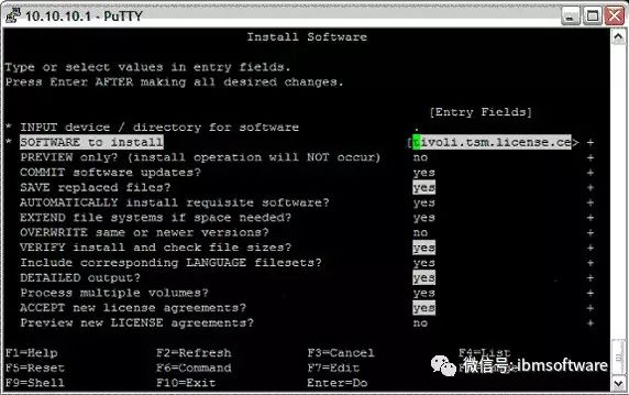图 4. 通过 AIX 命令提示符运行的 “smitty installp”