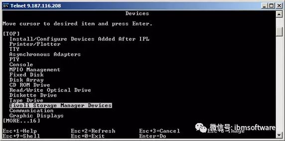 图 6. 在 AIX 命令行中键入 “smitty devices”