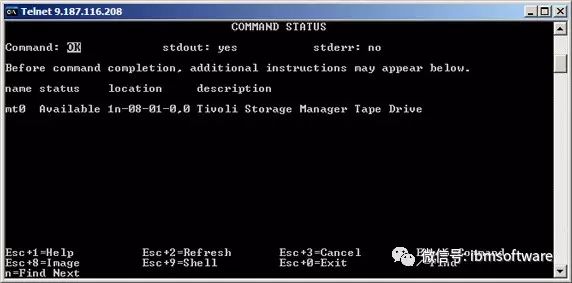 图 8. 通过 AIX 命令提示符运行的 “Add a Tape Drive”