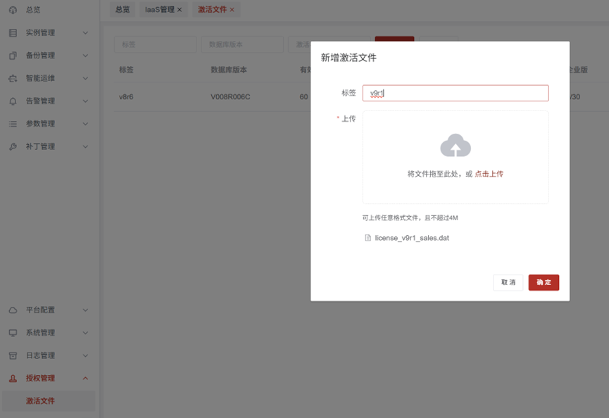 – 授权方式:非云平台目前支持数量授权,各授权方式含义参考“4.3.2 激活授权”章节