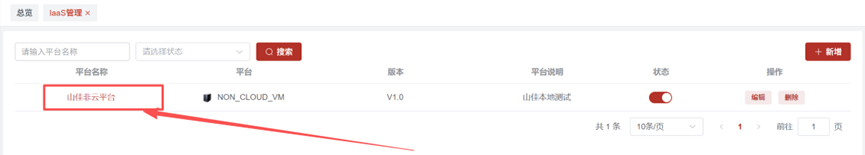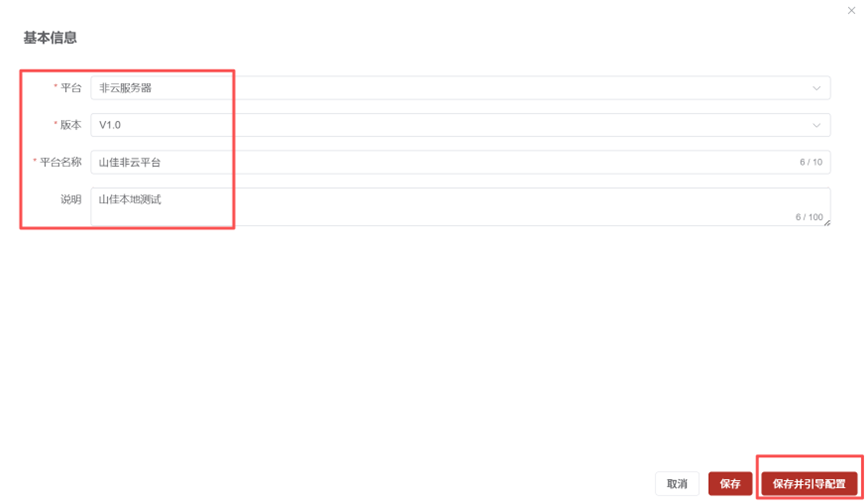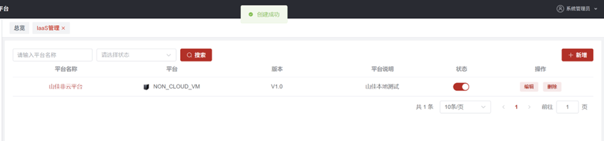 – 保存成功后,非云平台添加完成,如未配置,非云平台列表中,状态显示未配置,在非云平台中不能纳管服务器