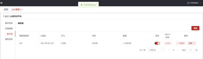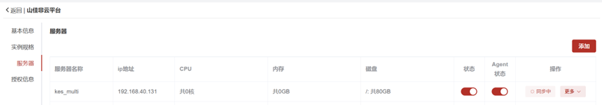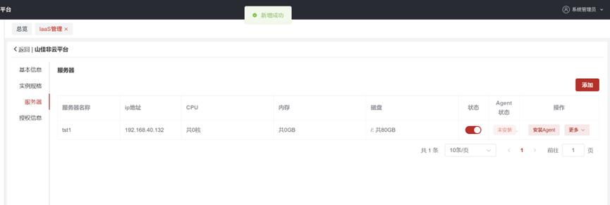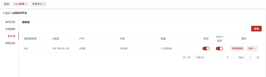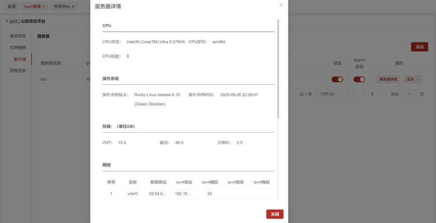 服务器信息同步完成后,此时在列表页中能看到服务器磁盘、内存、CPU等信息到此为止服务器纳管完成。