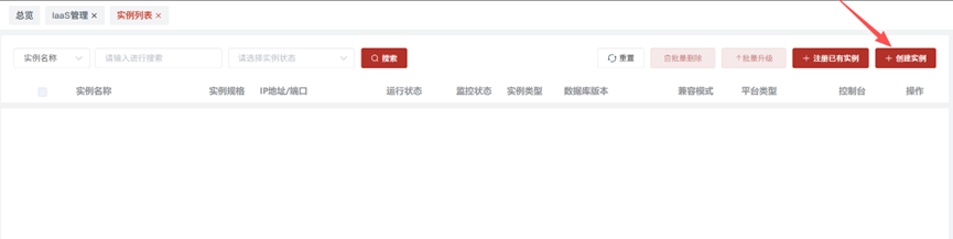 2.点击左侧菜单栏【实例管理】->【实例列表】,进入实例列表页面。
