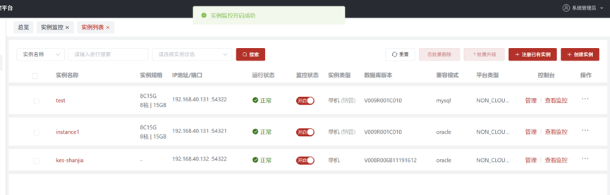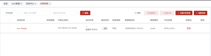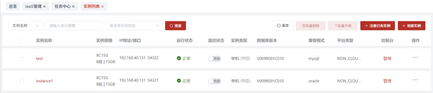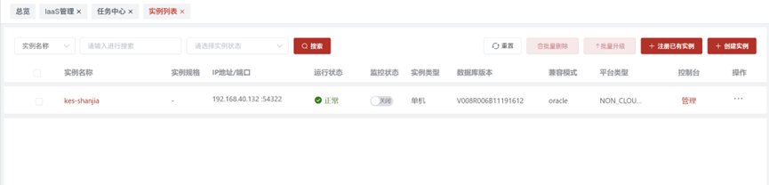 可以看到实例列表里面存在刚刚注册的数据库实例了,说明实例成功注册了。
