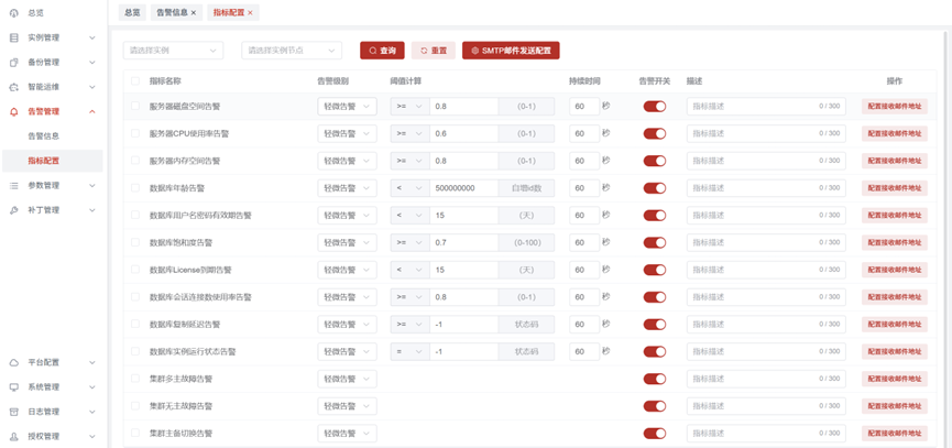 告警: 支持自定义告警规则(阈值、频率、接收组)。一旦触发,通过多种渠道(短信、邮件、站内信)主动推送,确保团队能第一时间响应。