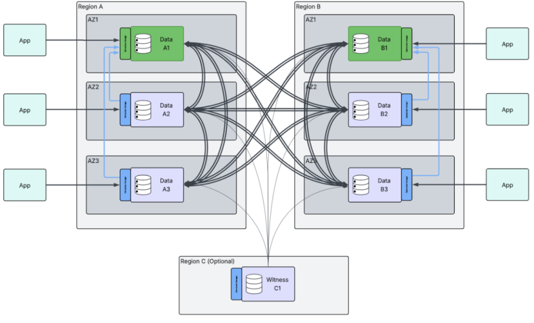 近/远架构(Near/Far Architecture):它由不同位置的两个数据组组成,一组处理写入,另一组处理读取。