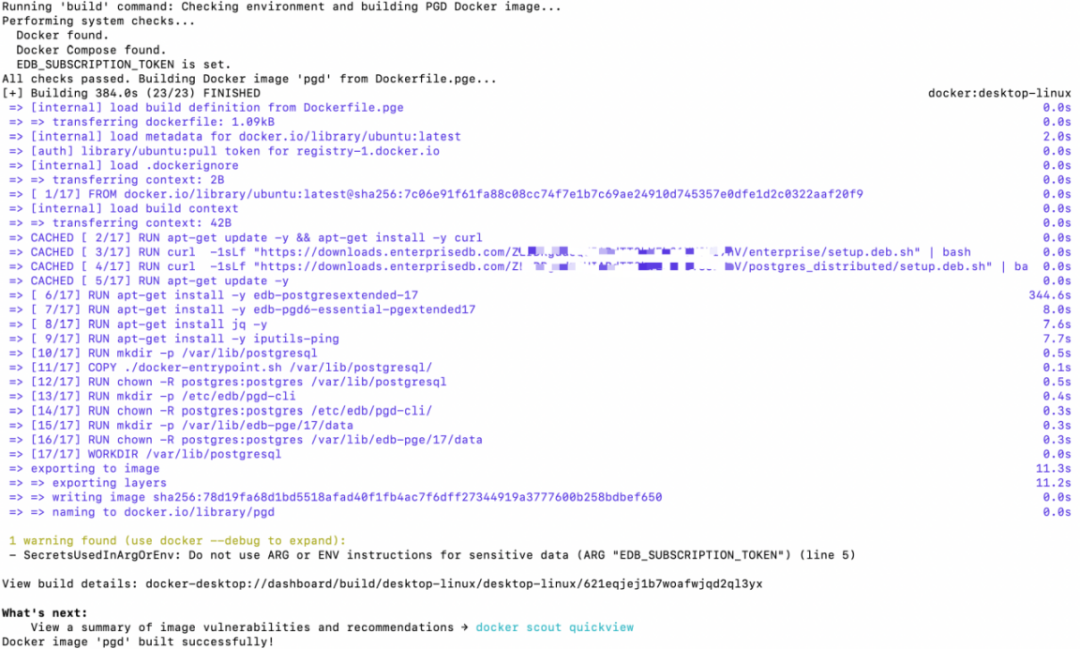 5.为 PGD 集群构建 Docker 镜像。运行以下命令: