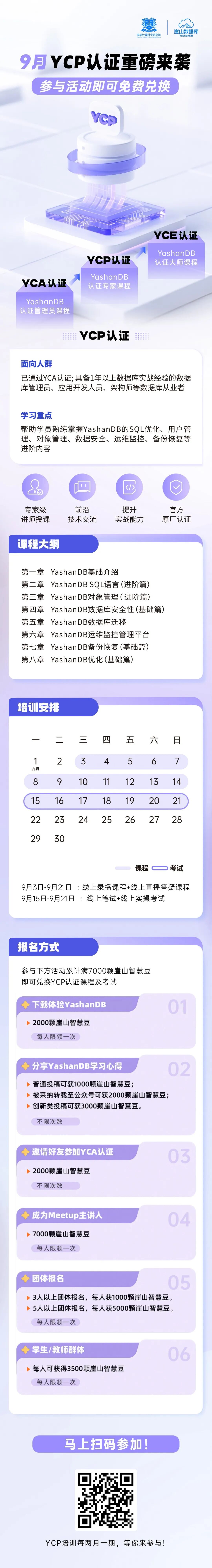 YCA培训基于体系架构、SQL语言等较完整地为受训者展现了崖山数据库系统的基本功能和特点。培训课程浅显易懂,帮助初学者快速上手、入门崖山数据库系统,并且还提供了人手一台的实验机器,可以初步体验崖山数据库系统。期待后续个人版安装包及后续的培训课程的开放,可以更深入的学习、使用崖山数据库系统。