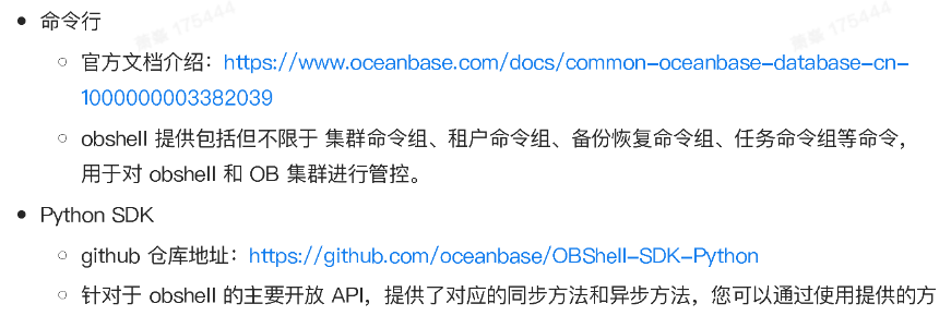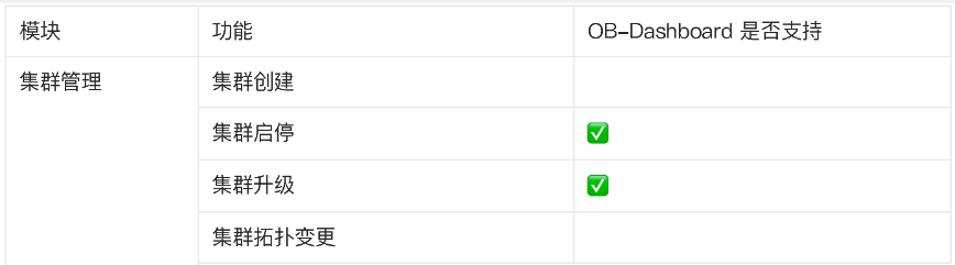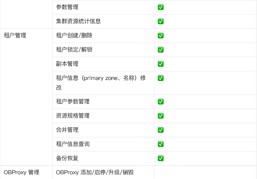 截止到 obshell 4.3.0.1为止,obshel 具备一下功能,囊括绝大部分 OceanBase 基础运维功能,能够满