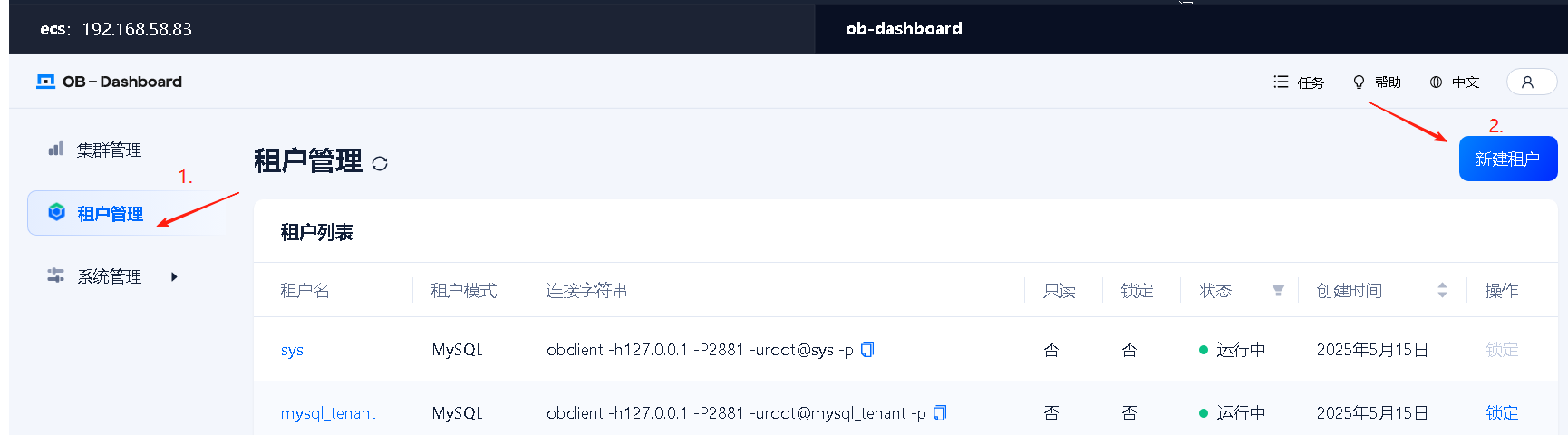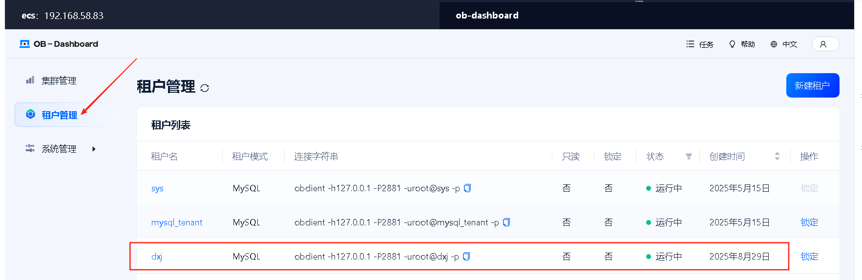 等任务执行成功之后,返回租户管理页面,可以查看到刚刚创建的租户。