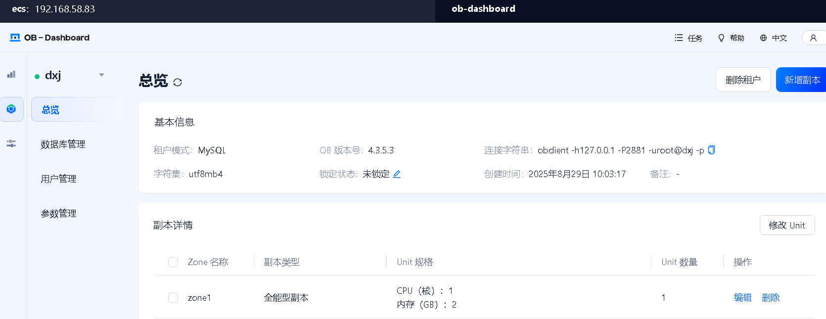 7.使用 OB-Dashboard 管理 OceanBase 集群实操