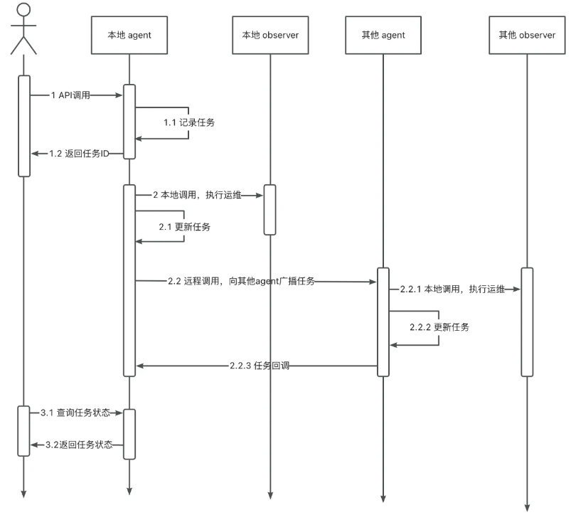 在 obshell 中,每个运维动作都由对应的任务完成,任务的调用时序图如下: