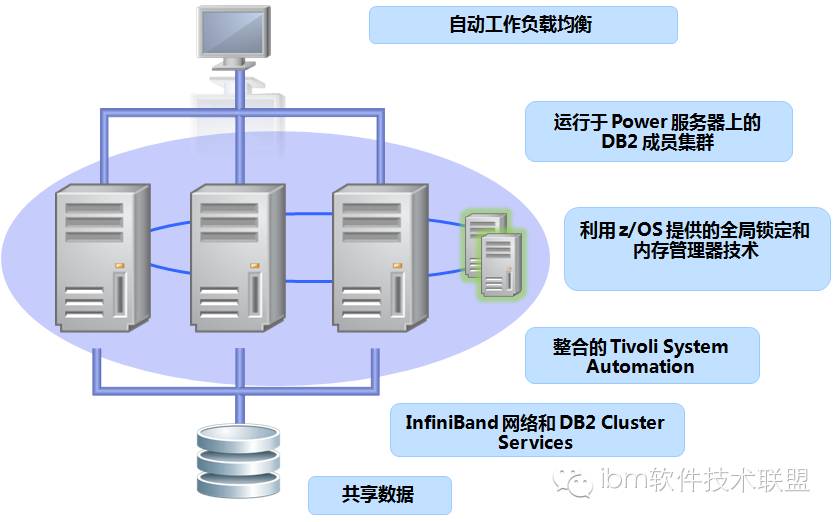 DB2 pureScale集群可以有多个成员(member)组成,每个成员都可以看成是一个能够提供完全数据库服务的节点。任何应用只需要连接到一个成员即为连接到成个数据库,所以在DB2 pureScale集群里面有多少成员对于应用是透明的。