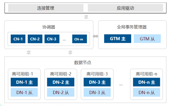 磐维分布式数据库集群中的节点主要分为三类,分别是协调器(Coordinator,CN)、数据节点(Data Node,DN)、全局事务管理器(Global Transaction Manager,GTM)。
