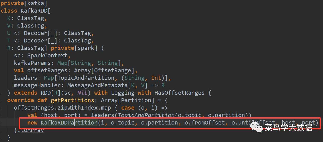 在这里,去获取KafkaRDD的partition,因为kafkaRDD的partition和topic的Partition是一一对应的