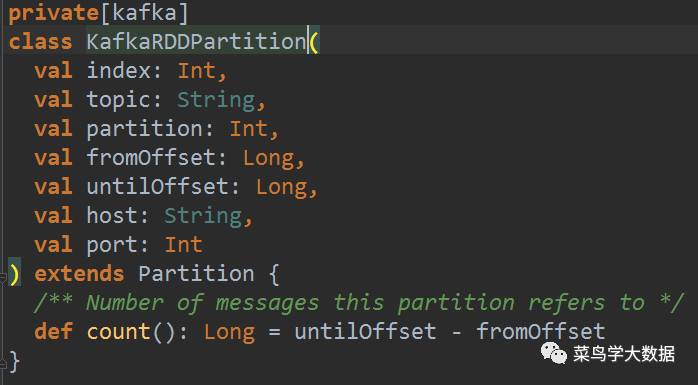 这里通过KafkaRDDPartition获取partition中message的个数。如下,通过untiloffset-fromoffset计算得到message个数。