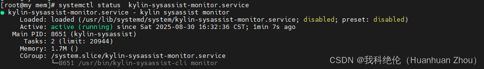 [root@my mem]# systemctl start kylin-sysassist-monitor.service #启动服务