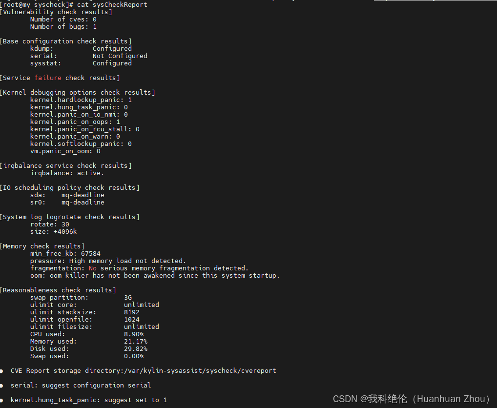 [root@my mem]# kylin-sysassist-cli syscheck
