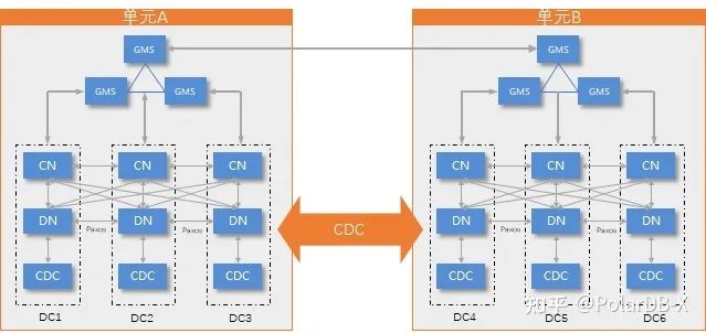 之后,我们在每个单元创建一个PolarDB-X实例,并且使用PolarDB-X的CDC组件将这些实例之间建立起复制链路。