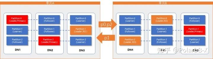 其中,partition0 与 partition2 的主单元在单元A,在单元A可读可写,在单元B只读;partition1 的主单元在单元B,在单元A只读,在单元B可读可写。