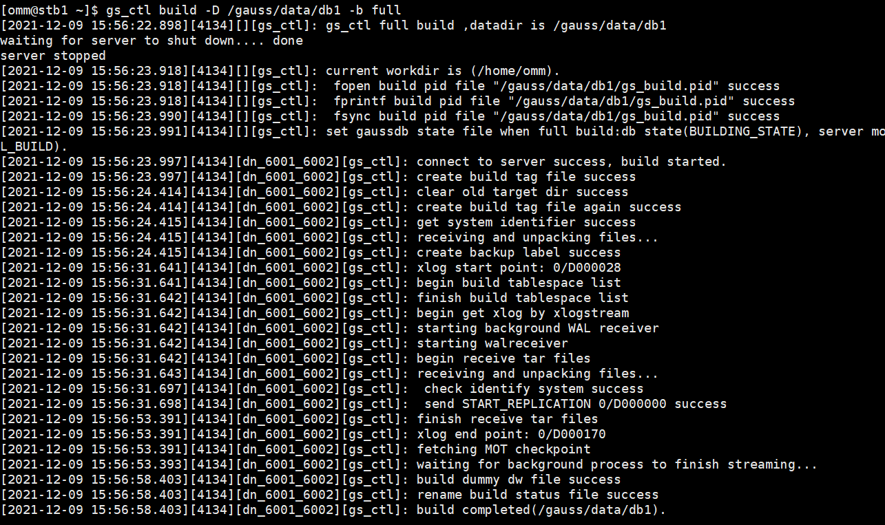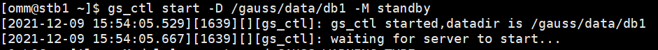 命令:gs_ctl start -D /gauss/data/db1 -M standby