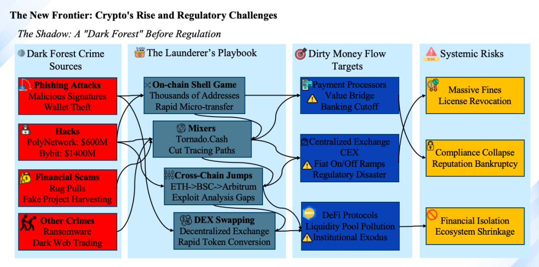 然而,光鲜的背后隐藏着"黑暗森林",在监管体系尚未完全建⽴之前,加密世界充斥着各种各样的犯罪活动。