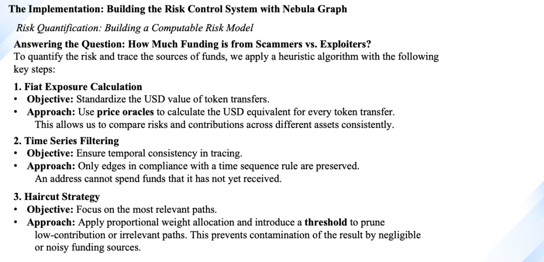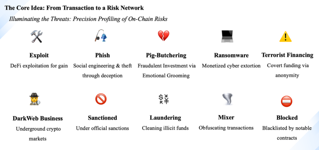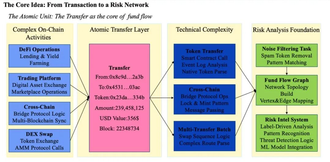 我们的目标是从这些海量的、复杂的链上"原子单元"中,构建风险分析的基础,包括噪声过滤(如移除垃圾代币)和资金流图(Fund Flow Graph)的建立。