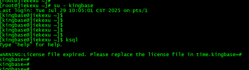如果不重启数据库或不重启主机,那么 License 过期了是没有影响的,任何功能都不限制,只是在登录 ksql 的时候有快到期提醒或者过期的提示。