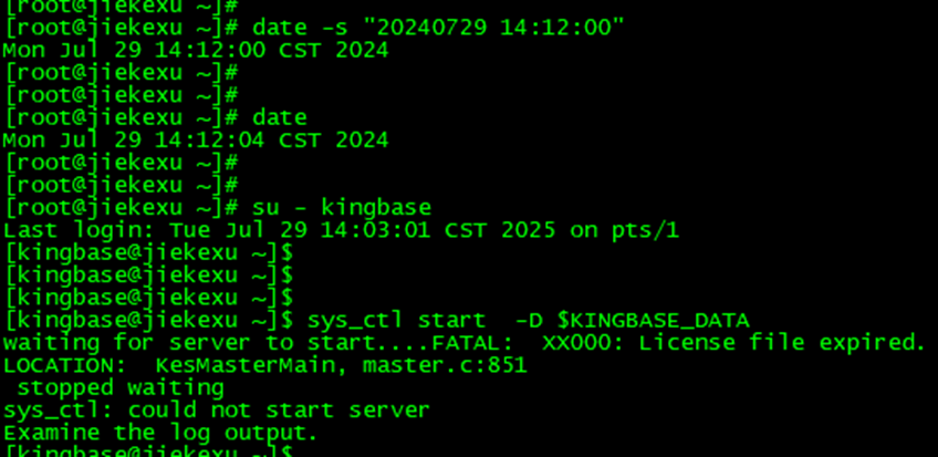 某日中午使用到了金仓 KES 单机测试数据库,出于好奇,是一台使用 90 天测试授权的 License 过期的个人测试数据库,想着重启一下看看会怎么样?于是就停止了数据库,打算重启一下,然后就启不来了,也是第一次遇到这种情况,特此记录一下。