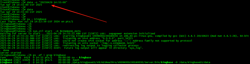 [kingbase@jiekexu ~]$ sys_ctl start -D $KINGBASE_DATA
