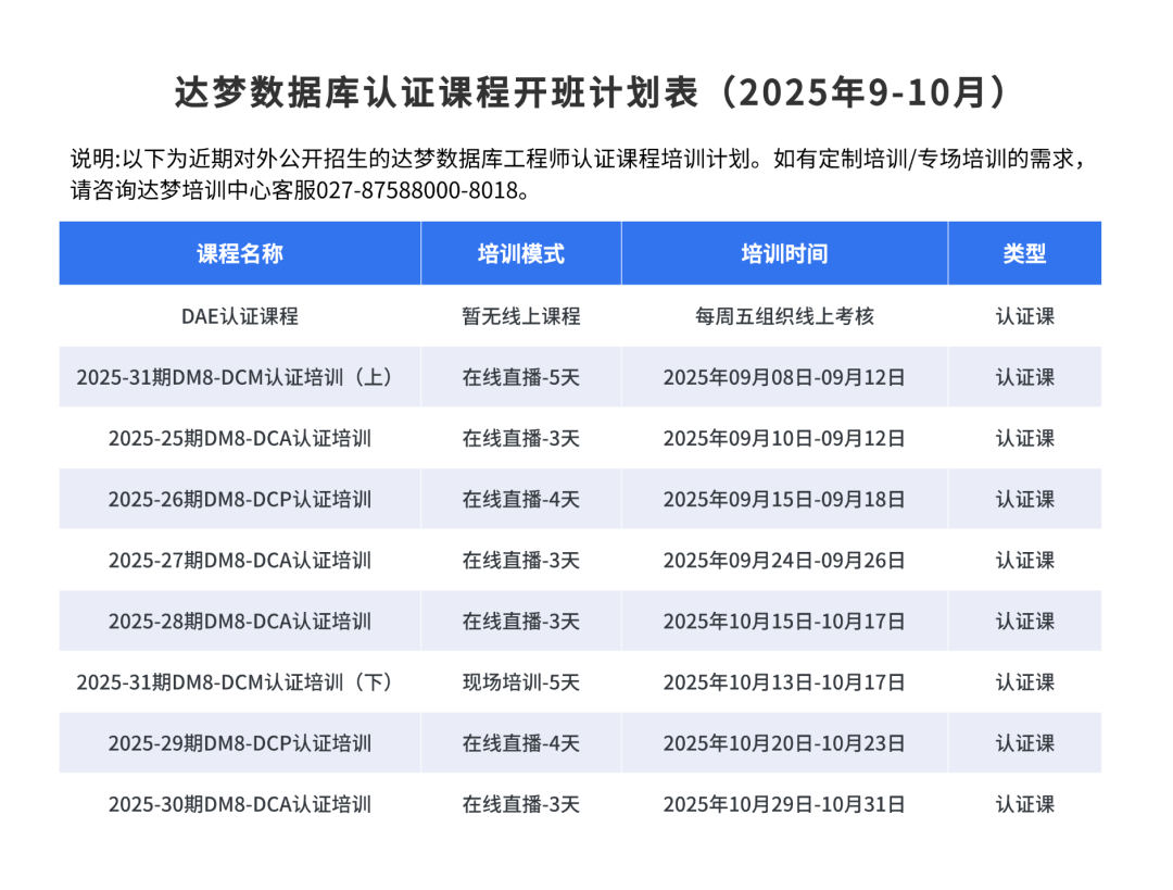 开班通知 | 2025年达梦认证大师DCM课程(2025年9月8日开班)