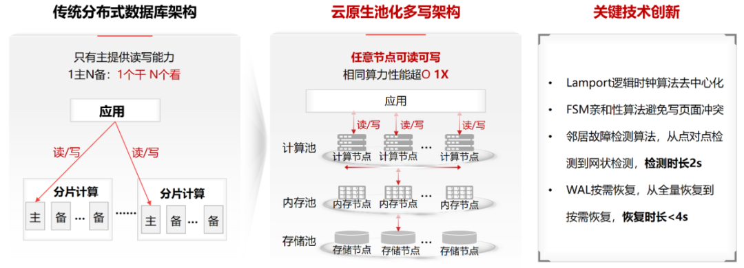 GaussDB面向企业核心交易生产系统,主打的是稳,今年会正式商用发布池化透明多写架构,带来性能、可靠性、资源利用率的三重倍增。